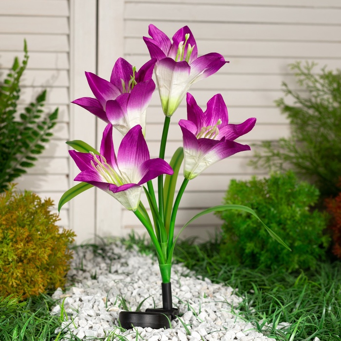 Садовый светильник «Лилия фиолетовая», уличный, на солнечной батарее, 70 см, 4 LED, свечение мульти