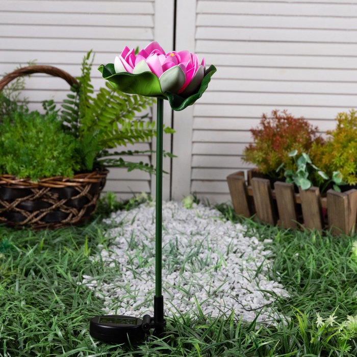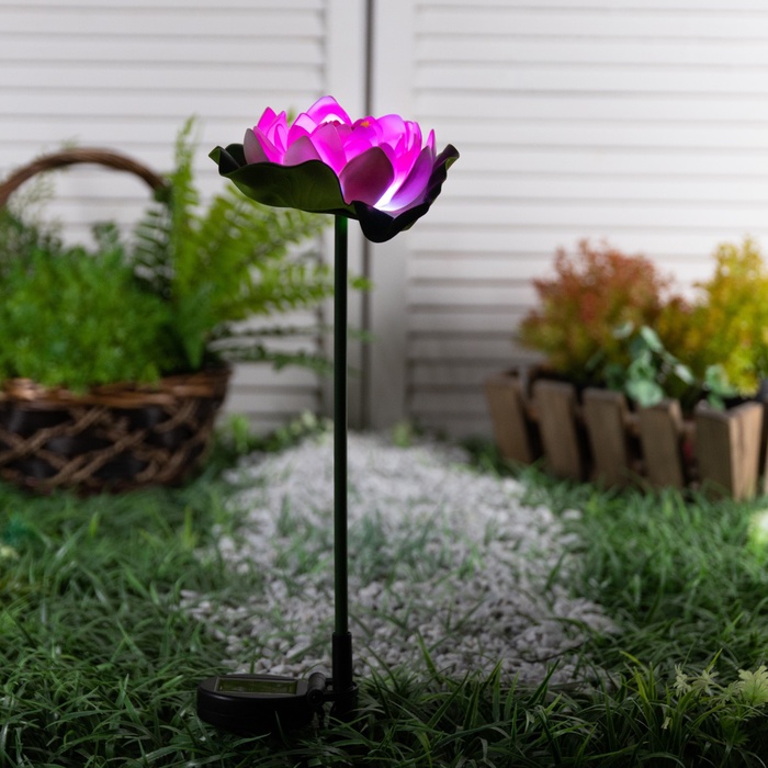 Садовый светильник «Лотос», уличный, на солнечной батарее, 70 см, 1 LED, свечение белое