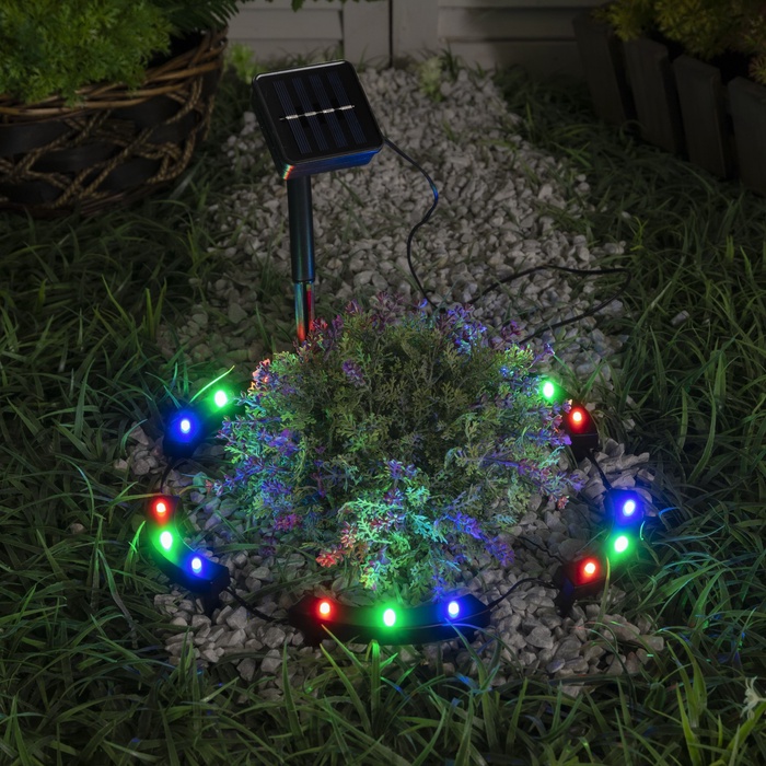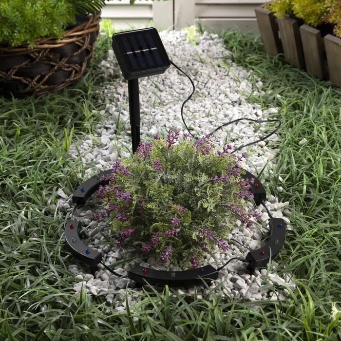 Садовый светильник «Обруч», уличный, на солнечной батарее, 15 LED, свечение мульти