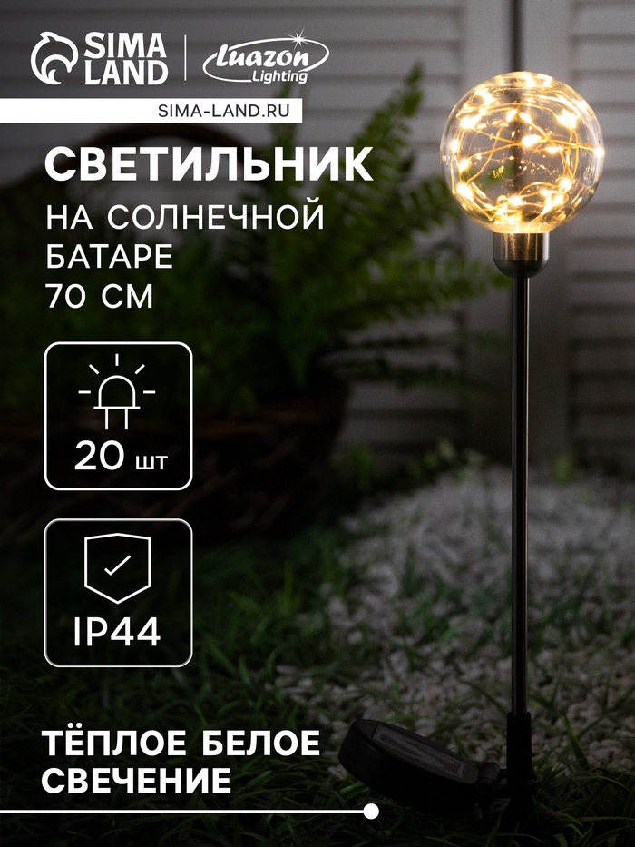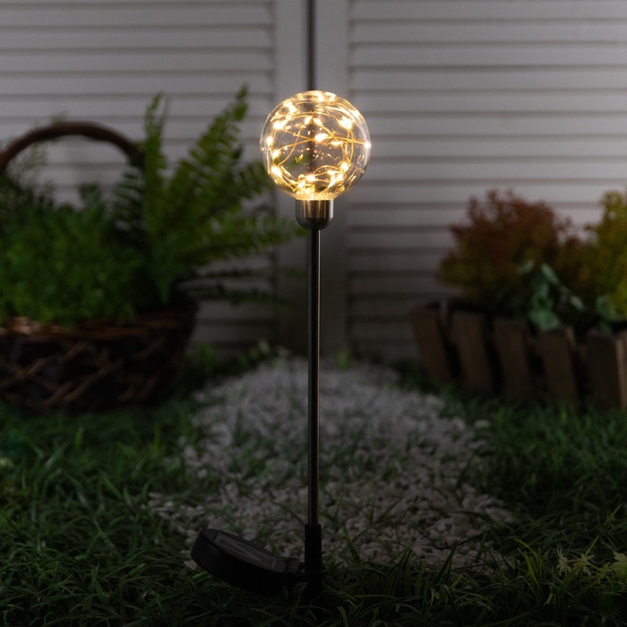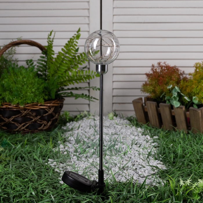Садовый светильник «Шар», уличный, на солнечной батарее, 70 см, 20 LED, свечение тёплое белое