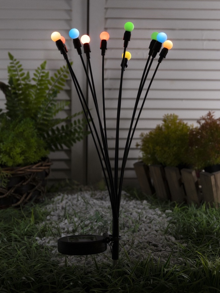 Садовый светильник «Шарики», уличный, на солнечной батарее, 68 см, 10 LED, свечение мульти