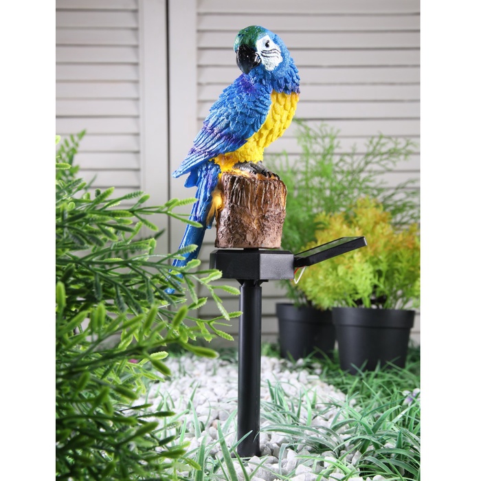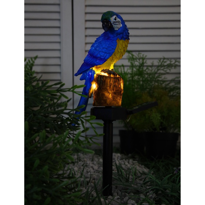 Садовый светильник «Синий Ара», уличный, на солнечной батарее, 45 см, 1 LED, свечение тёплое белое