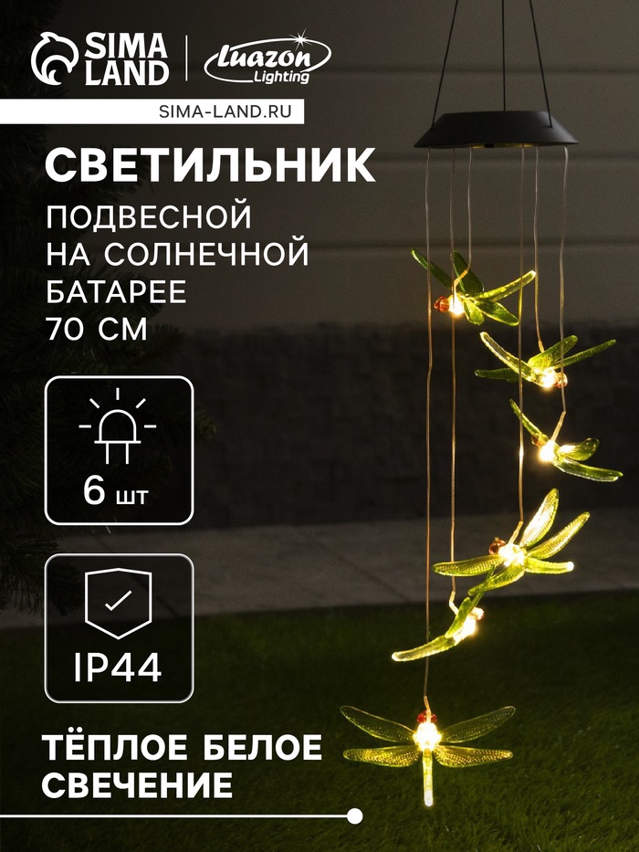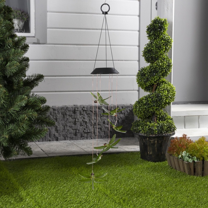 Садовый светильник «Стрекозы», уличный, на солнечной батарее, 6 LED, свечение тёплое белое