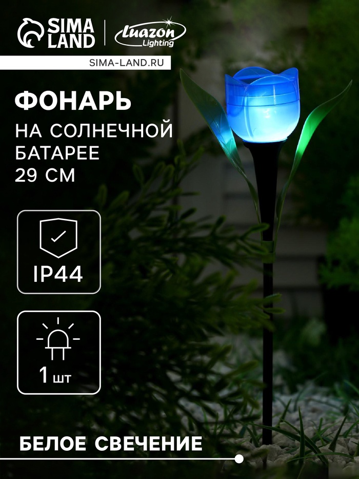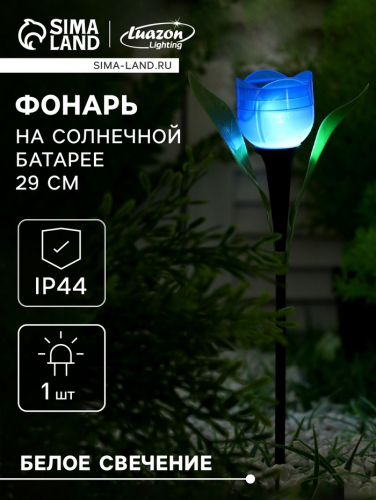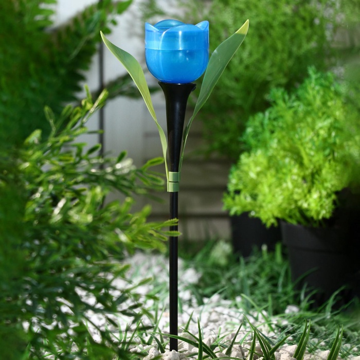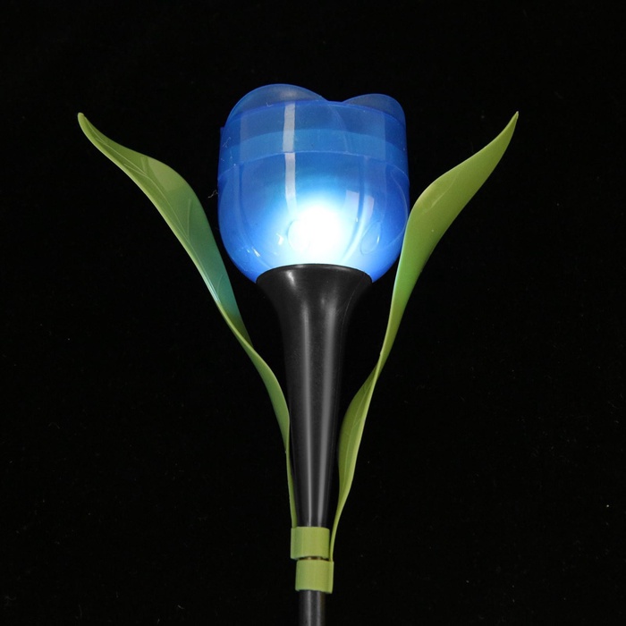 Садовый светильник «Тюльпан синий», уличный, на солнечной батарее, 5×29×4 см, 1 LED, свечение белое