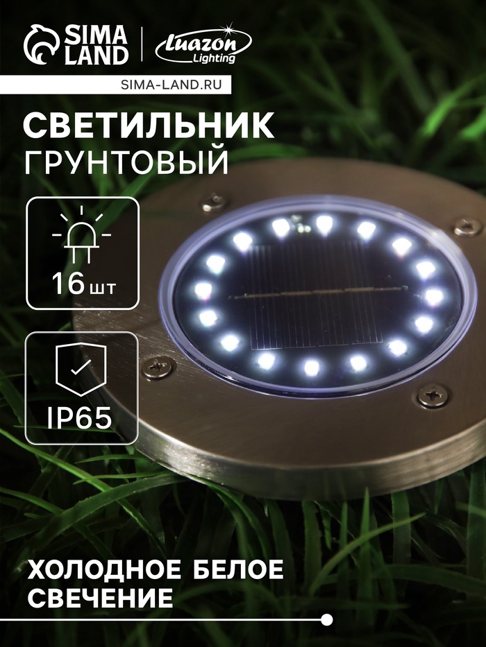 Садовый светильник, уличный, на солнечной батарее, 16 LED, свечение белое