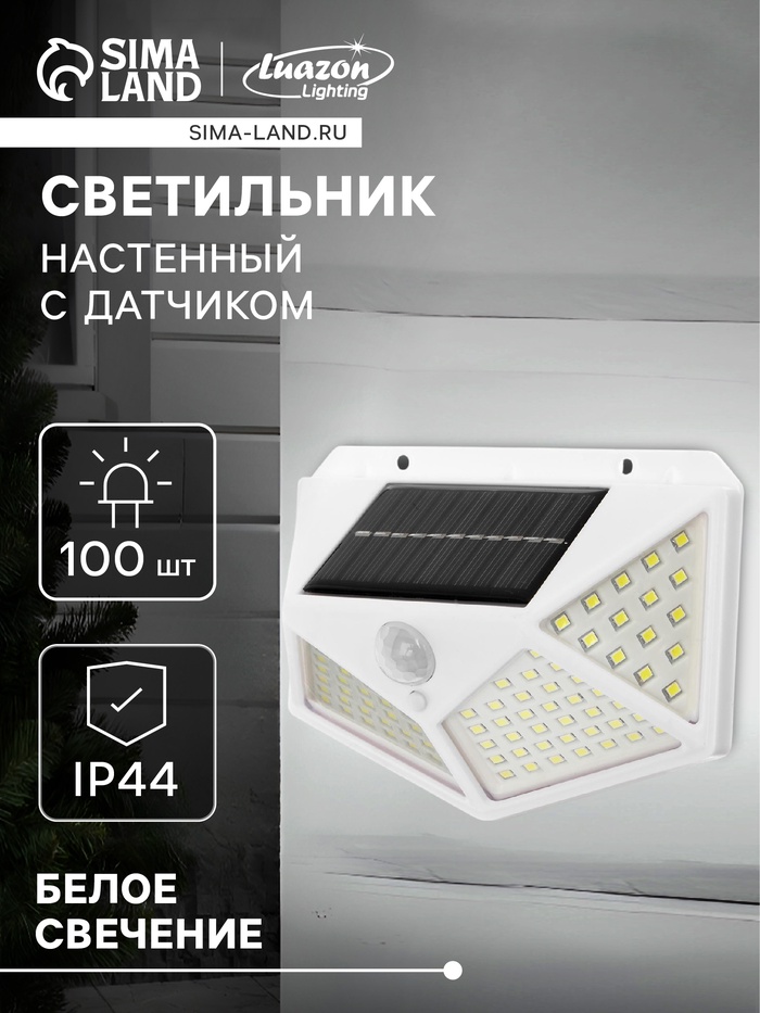 Садовый светильник, уличный, на солнечной батарее, накладной, 100 LED, свечение белое