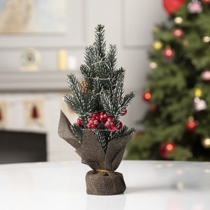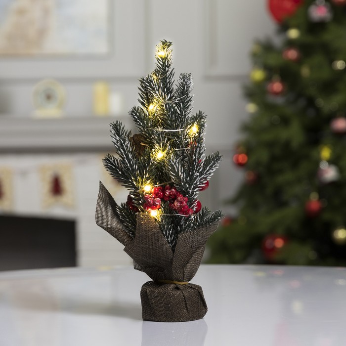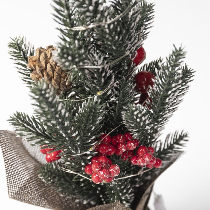 Светодиодная фигура «Ёлка с ягодами и шишками» 8.5×29×6.5 см, пластик, от батареек CR2032×2, свечение тёплое белое