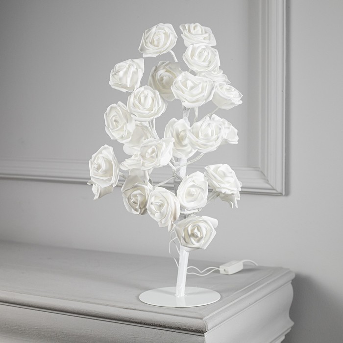 Светодиодный куст «Розы белые» 45 см, 24 LED, постоянное свечение, 220 В, свечение тёплое белое