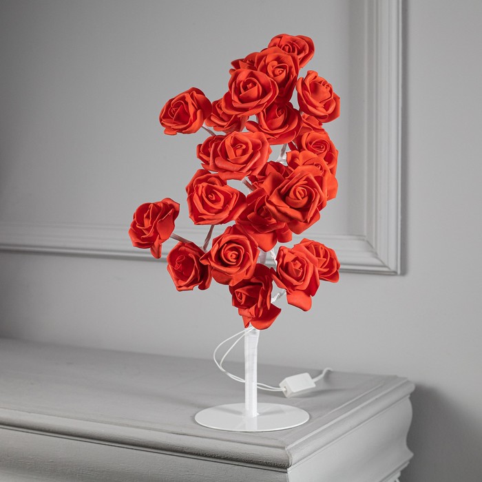 Светодиодный куст «Розы красные» 45 см, 24 LED, постоянное свечение, 220 В, свечение тёплое белое