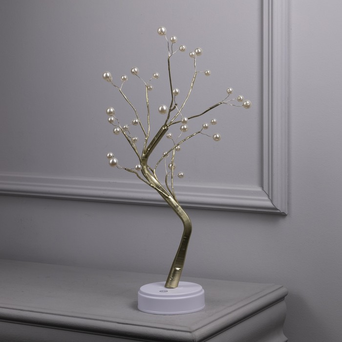 Светодиодный куст «Жемчужины золотистые» 45 см, 36 LED, постоянное свечение, от батареек AAx3, USB, свечение тёплое белое