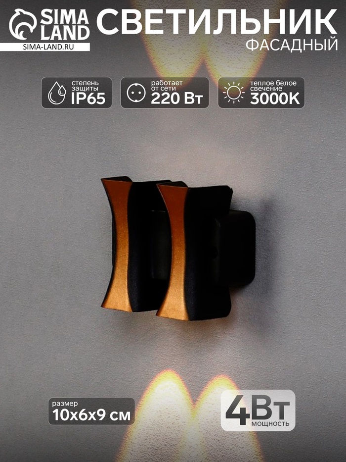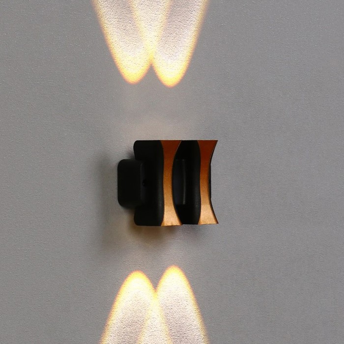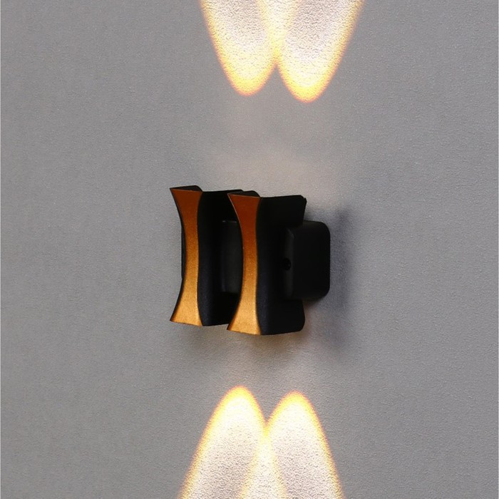 Светильник фасадный «Элегант», 4 Вт, 3000К, 2 луча, IP65, 220 В, пластиковый корпус, чёрный, свечение тёплое белое
