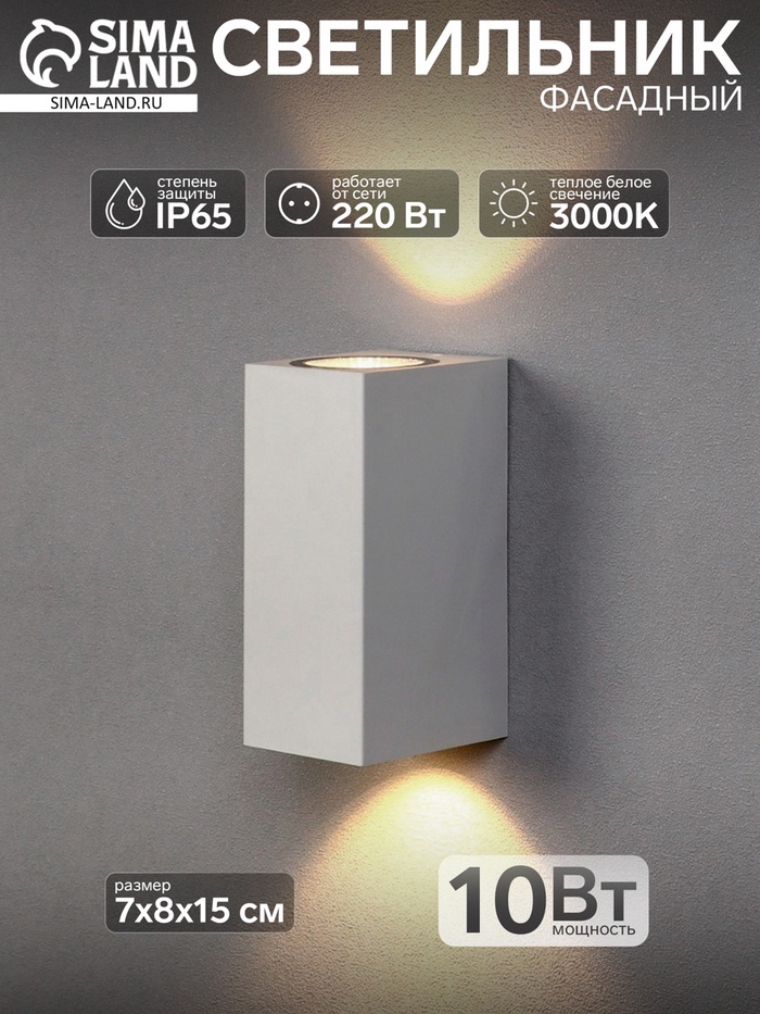 Светильник фасадный «Глайт», 10 Вт, 3000K, IP65, 220 В, пластиковый корпус, белый, свечение тёплое белое