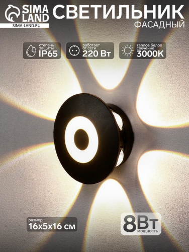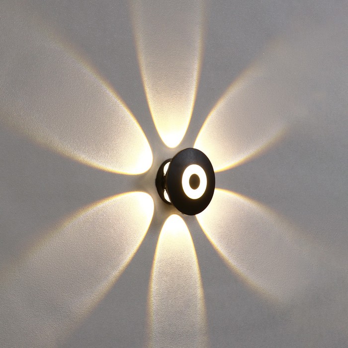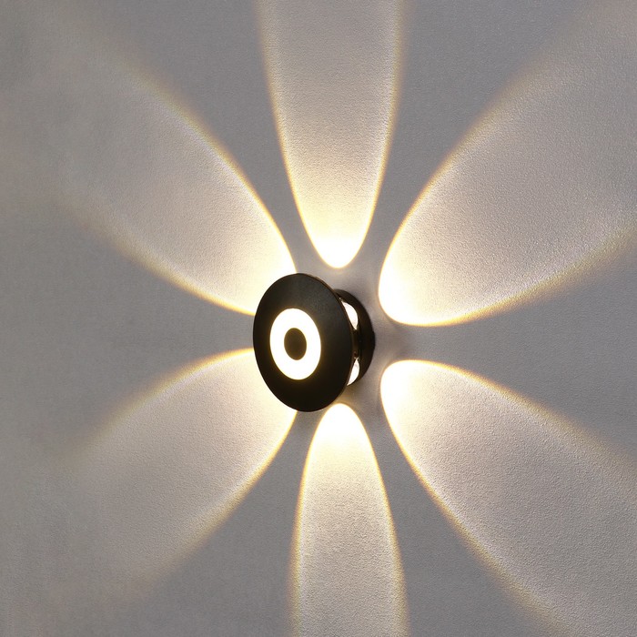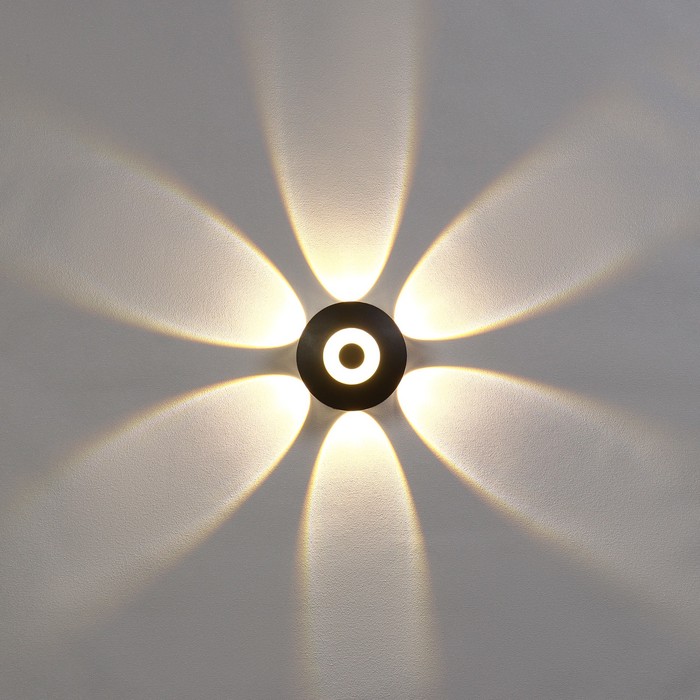 Светильник фасадный «Искра», 8 Вт, 3000К, 6 лучей, IP65, 220 В, пластиковый корпус, чёрный, свечение тёплое белое