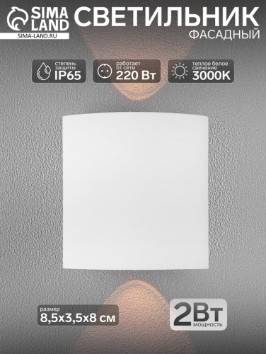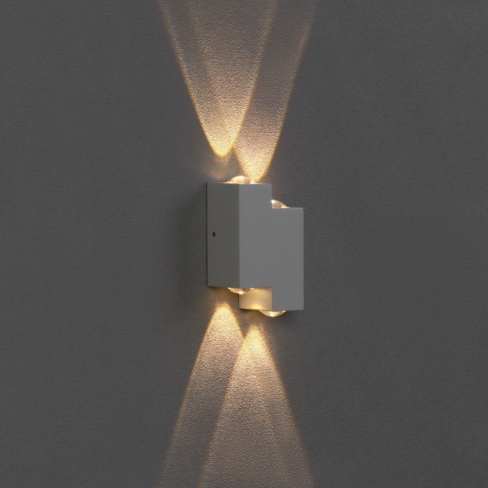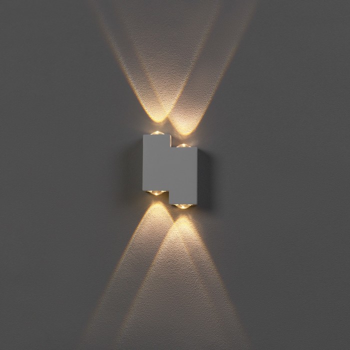 Светильник фасадный «Луч», 4 Вт, 3000К, 2 луча, IP65, 220 В, металлический корпус, белый, свечение тёплое белое