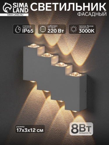 Фасадный светильник «Луч» мощностью 8 Вт, который станет идеальным решением для наружного освещения вашего дома или здания. Его современный дизайн и высококачественные материалы обеспечат долговечность и надежность в любых погодных условиях.