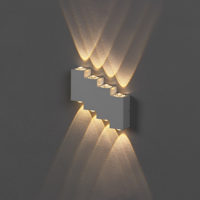 Светильник фасадный «Луч», 8 Вт, 3000К, 4 луча, IP65, 220 В, металлический корпус, белый, свечение тёплое белое