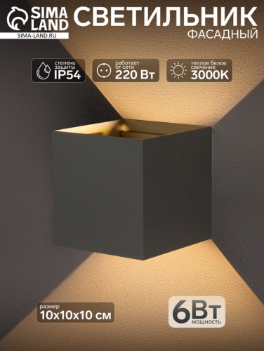 Светильник фасадный «Сити», 10 Вт, 3000К, IP65, 220 В, пластиковый корпус, чёрный, свечение тёплое белое
