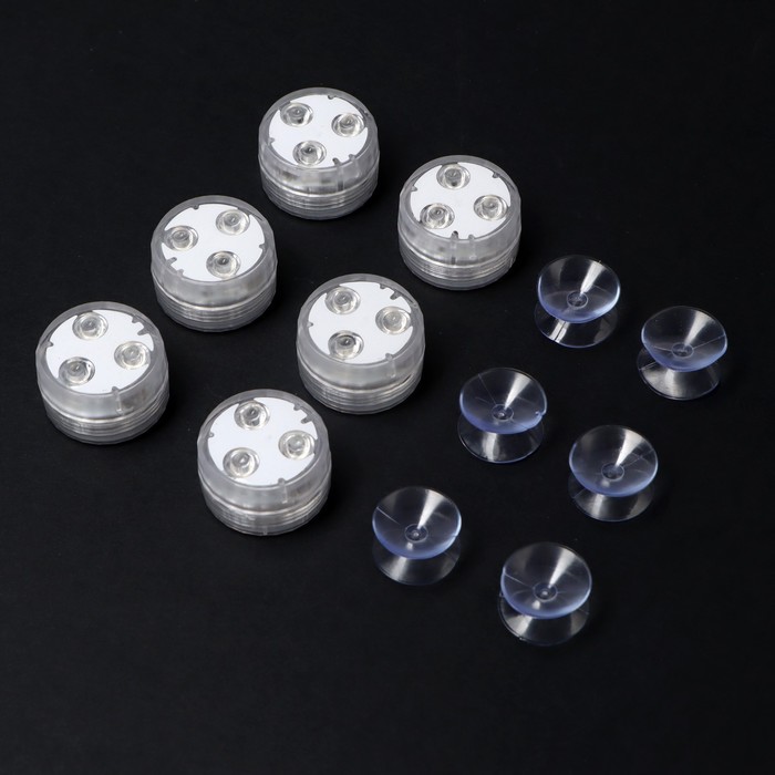 Светильник водонепроницаемый, мини, RGB, IP68, 3×1.9 см, от CR2032, пульт, 6 шт.