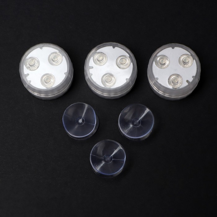 Светильник водонепроницаемый, мини, RGB, IP68, 3×1.9 см, от CR2032, пульт, 3 шт.