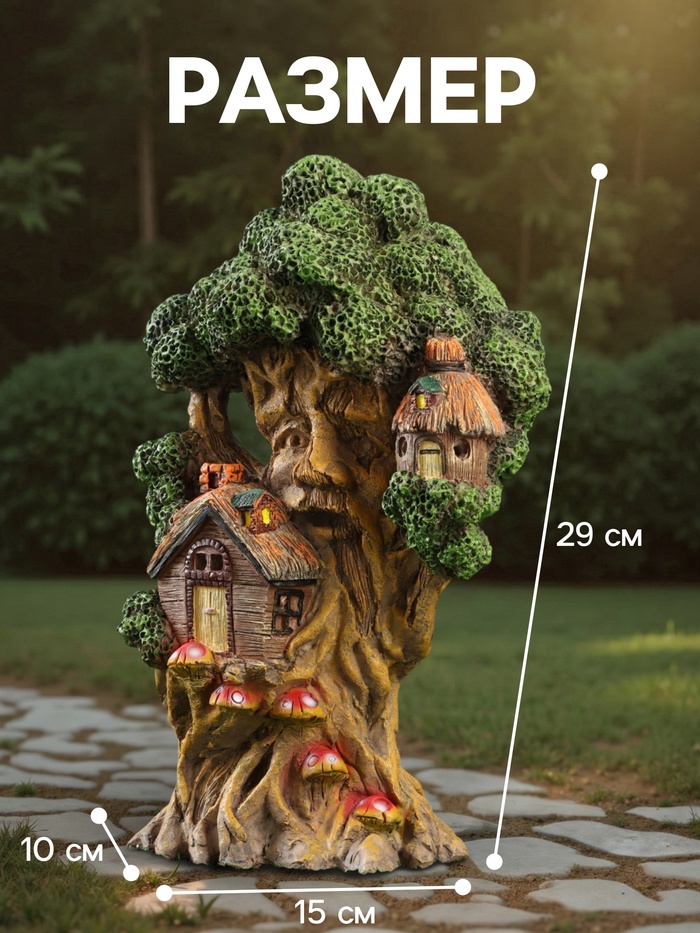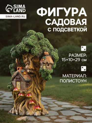 Садовая фигура - фонарь из полистоуна «Дом на дереве», 15×10×29 см