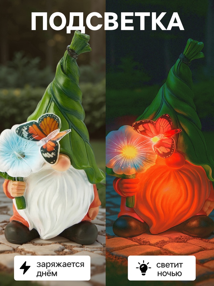 «Гном с цветочком» - это простое и доступное решение для украшения сада. Яркий днем и уютный вечером, он создаст праздничное настроение без лишних хлопот. Выбирайте практичный декор, который будет радовать вас весь сезон!