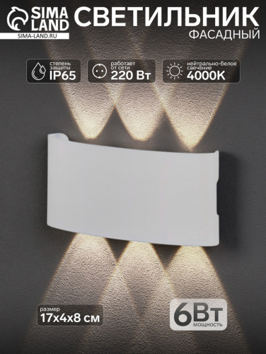 УЦЕНКА Светильник фасадный «Полусфера», 6 Вт, 4000К, 3 луча, IP65, 220 В, пластиковый корпус, свечение нейтральное белое