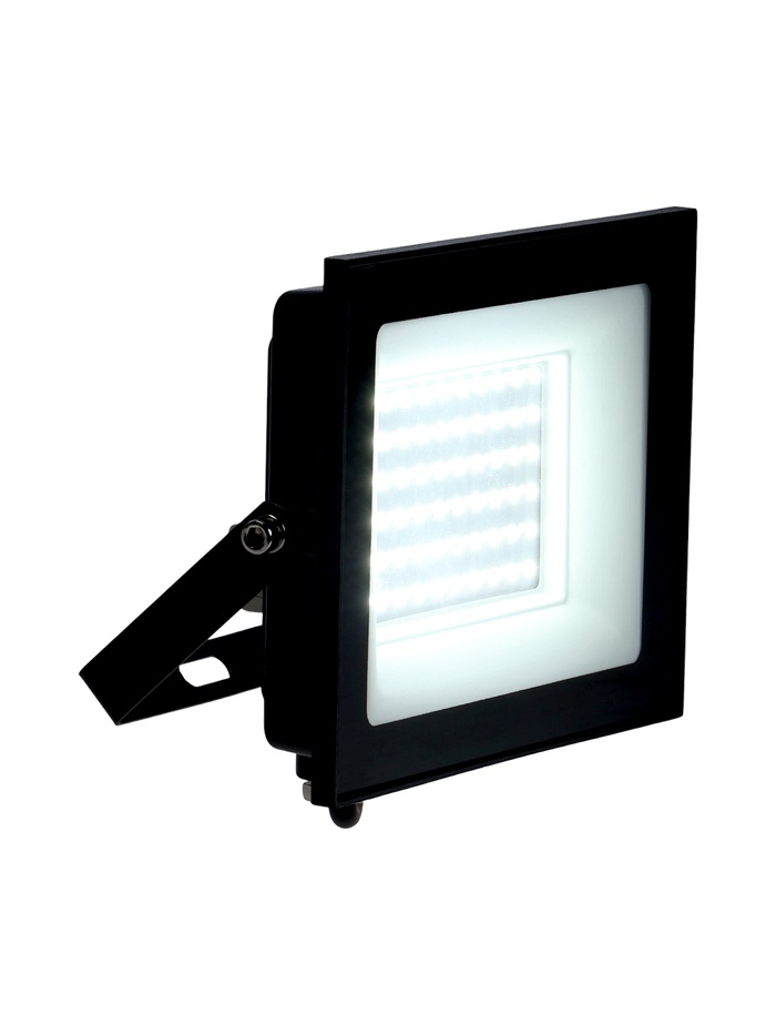 Мощный светодиодный прожектор рассчитан на освещение больших открытых пространств и рабочих зон. При мощности 70 Вт он выдаёт световой поток 8400 Лм, формируя яркий и равномерный холодный белый свет с температурой 6500К.
