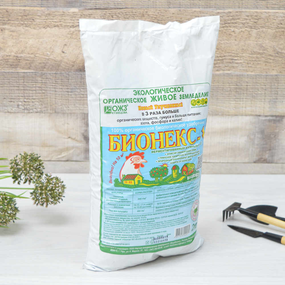 Бионекс-1 2кг (куриный помет)Сухое органическое удобрение на основе компостированного куриного помета. Повышает урожайность и плодородие почвы. Универсальное: для овощей, ягод, цветов, трав, плодовых деревьев и кустарников, рассады.Заключаем договора по 44 ФЗ, 223 ФЗ