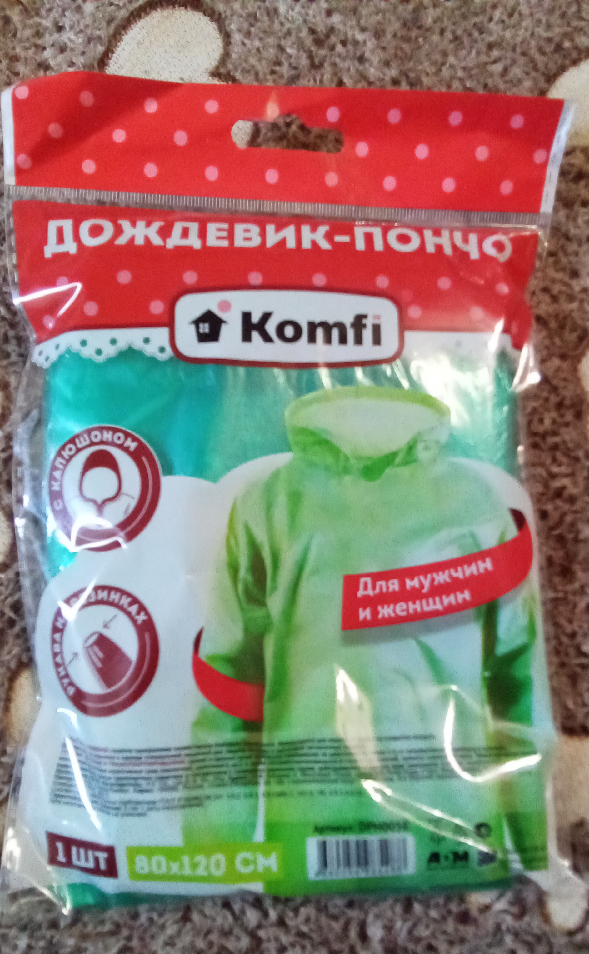 Отзывы и вопросы о товаре «Дождевик-пончо полиэтиленовый с рукавами, зеленый Komfi»