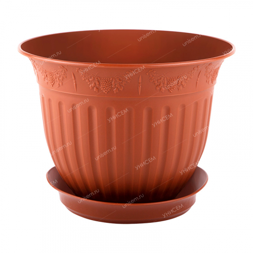 Цветочный горшок – один из самых красивых декоративных украшений интерьера. Горшок «Виноград» станет ярким акцентом в домашнем или офисном интерьере. Изготовлен из прочного и качественного пластика, к техническим свойствам которого – устойчивость к механическому и атмосферному воздействию, стоит добавить ещё и экологичность. Помимо этих преимуществ, пластиковые горшки обладают лёгким весом (особенно важен этот показатель для любителей крупных представителей флоры – небольшой вес горшка позволяет передвинуть растения без особых усилий). Данная модель горшка окрашена в чёрный цвет и идёт в комплекте с поддоном-блюдцем. На дне горшка предусмотрена специальная дренажная система, без проделанных отверстий. При необходимости отверстия легко можно проделать самостоятельно в специально оставленных для этих целей местах. Объём – 1 литр, диаметр – 16 см.