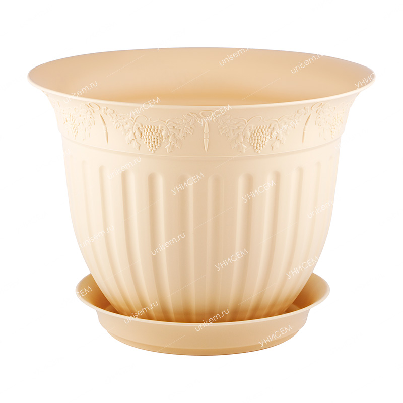 Горшок Виноград 1л d16 крем с поддоном (уп.10)