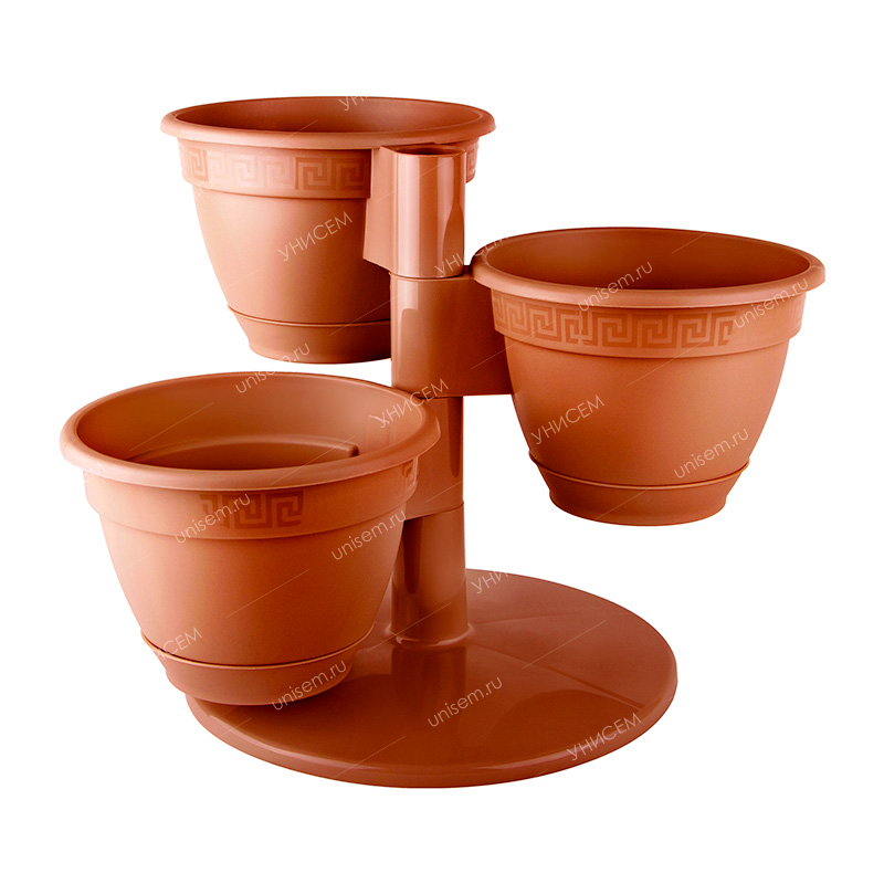 Любите растения в доме и хотите создавать причудливые композиции? Цветочный каскад «Антик» поможет воплотить все ваши дизайнерские фантазии. Каскад состоит из 3-х коричневых цветочных горшков, которые располагаются ярусами на устойчивом основании. Каждый горшок объёмом 0,9 литров. Прекрасно подходит для выращивания комнатных растений и зелени прямо у себя на подоконнике. Каскад изготовлен из высококачественного, надёжного и крепкого пластика, который абсолютно безопасен для использования, а также не имеет химического запаха. Особенность такого каскада – компактное размещение трёх растений, каскад позволяет занимать минимальное пространство вашего дома.