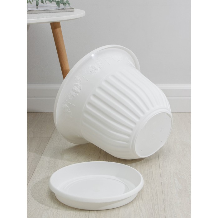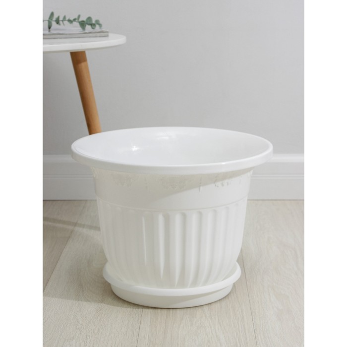 Горшок для цветов с поддоном «Лозанна», 17 л, d=41 см, пластиковый, белый