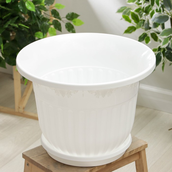 Горшок для цветов с поддоном «Лозанна», 25 л, пластиковый, белый