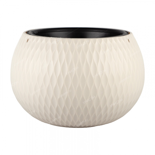 Кашпо «Жемчужина»– стильное и функциональное решение для размещения и выращивания крупных комнатных растений. Многогранная поверхность придаёт визуальную лёгкость и особенную эстетику изделию. Белый цвет кашпо делает его элегантным и современным, поэтому он будет гармонично смотреться в любом интерьере. Такое кашпо идеально подойдёт для выращивания крупных комнатных растений. Состоит из двух частей: внешний вазон и внутренняя вставка. Внутренняя вставка имеет дренажные отверстия и предотвращает перелив растений и загнивание корней, а внешняя часть защищает кашпо от протекания. Кашпо имеет два варианта использования: стоя на полу или подоконнике и в комплектации с подвесным металлическим механизмом, что позволит подвешивать кашпо как дома, так и на садовых участках, расширяя варианты выбора растений от прямых до вьющихся. Для удобного извлечения дренажной вставки кашпо оснащено специальными ручками. Такая конструкция предотвращает травмирование корневой системы и облегчает пересадку растения.Характеристики:• объём кашпо – 9,7 л;• объём вставки – 4 л;• диаметр – 290 мм;• цвет – бежевый.