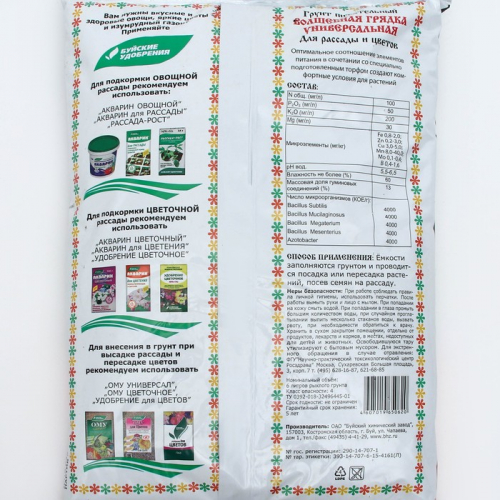 Грунт для выращивания рассады овощных и цветочных культур, декоративных горшечных растений и выгонки зеленных культур. Приготовлен на основе нейтрализованного верхового торфа с добавлением в сбалансированном соотношении необходимых макро- и микроэлементов.