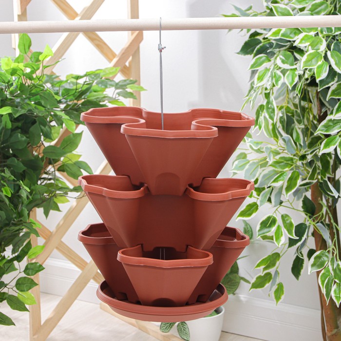 Кашпо для цветов многоярусное «Каскад», 3 шт., 12 л (секция 4 л), цвет терракотовый