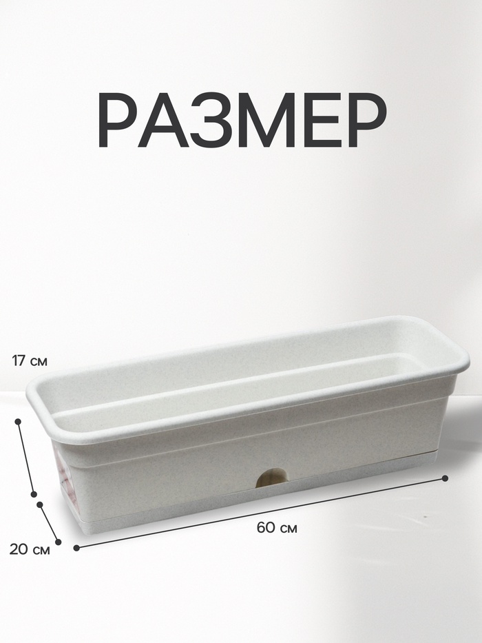 Ящик балконный для цветов, 12 л, 60×20×17 см, пластиковый, цвет мраморный