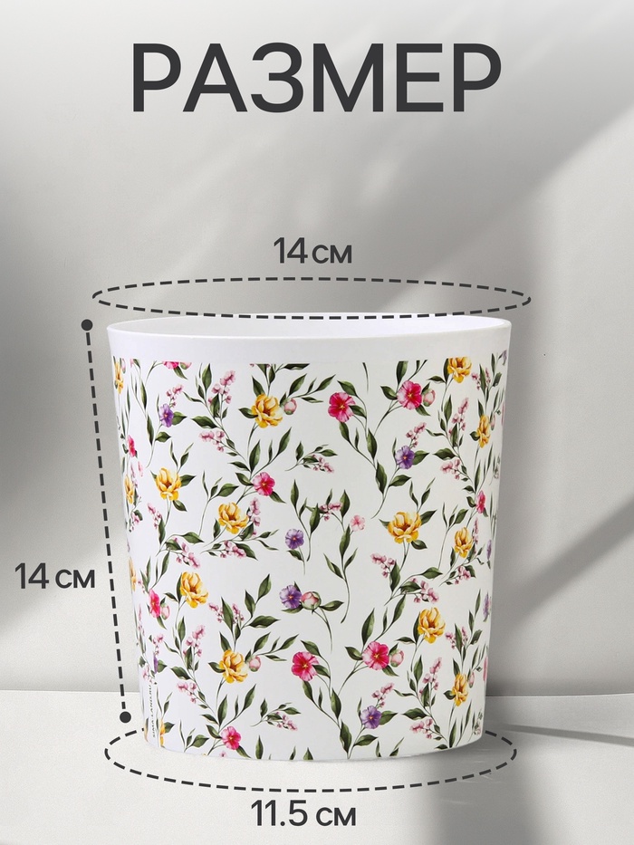Кашпо для цветов «Цветы», 1.6 л, d=14 см, h=14 см, пластиковое