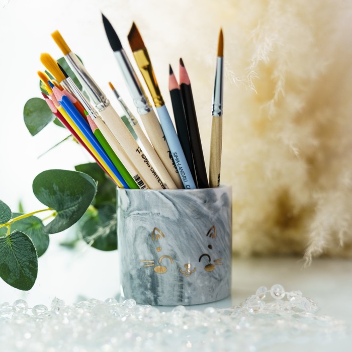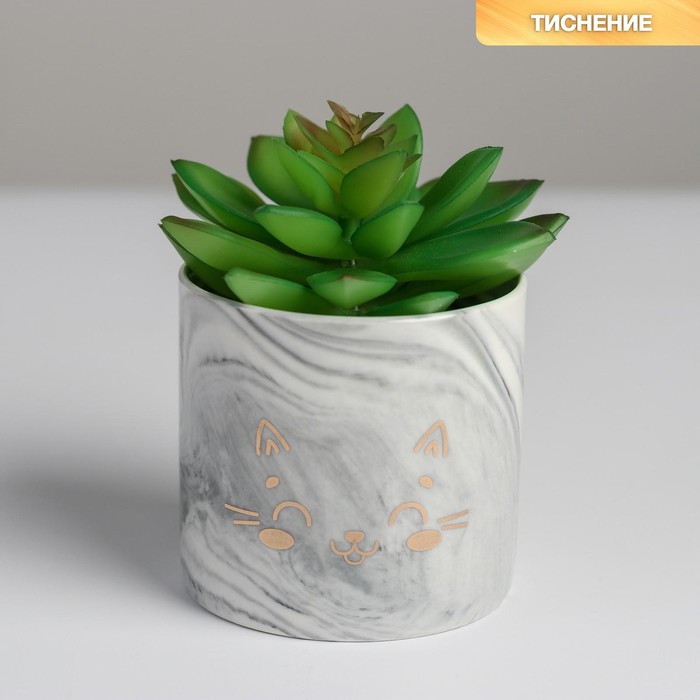 Кашпо для цветов керамическое с тиснением «Котик», 8 х 7,5 см