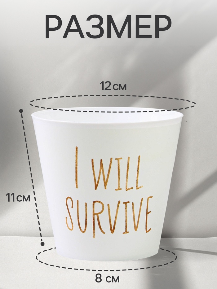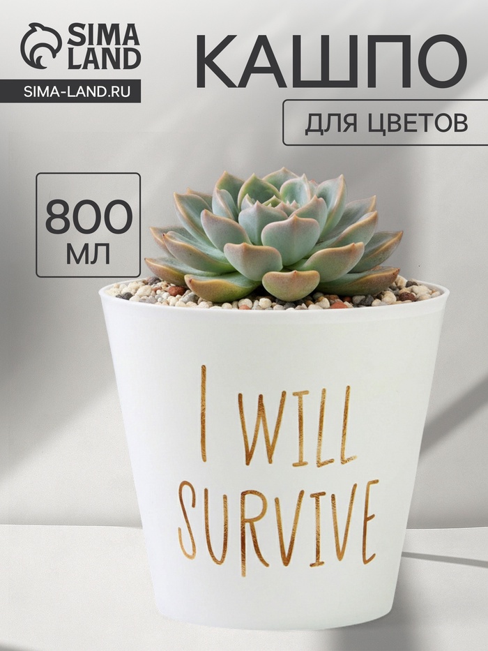 Кашпо для цветов «Я выживу», 800 мл, d=12 см, h=11 см, пластиковое