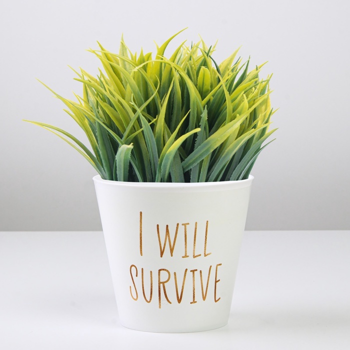 Кашпо «Я выживу» — пластиковое кашпо с мотивирующей надписью. Белый цвет служит нейтральным фоном для текстового сообщения. Компактный размер подходит для размещения на рабочих столах и полках.