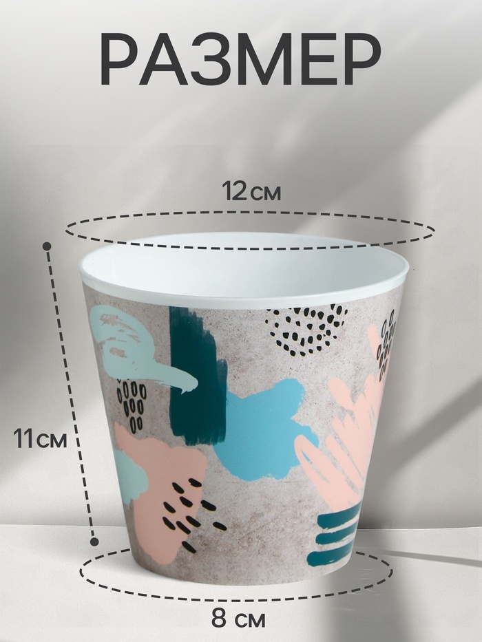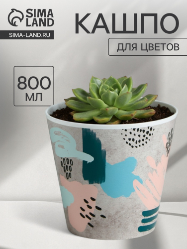 Кашпо для цветов «Яркие мазки», 800 мл, d=12 см, h=11 см, пластиковое