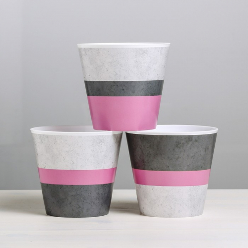 Набор кашпо «Лофт», 3 в 1 — это комплект для создания мягкого и стильного акцента в интерьере. Кашпо украшены горизонтальными полосами в нежной палитре белого, серого и розового цветов. Три одинаковых по объёму сосуда позволяют формировать гармоничные композиции на столе, подоконнике или полке.