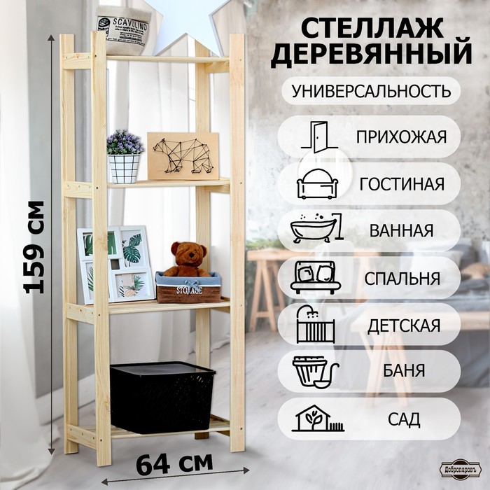 Стеллаж деревянный «Альфа плюс», 4 полки, 159×64×28 см, напольный, «Добропаровъ»