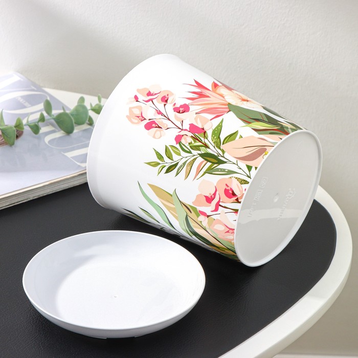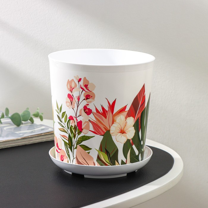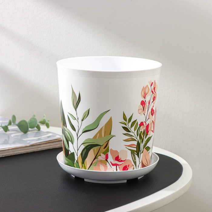 Горшок для цветов с поддоном Доляна «Тропический лес», 1.6 л, d=14 см, h=15.5 см, цвет белый