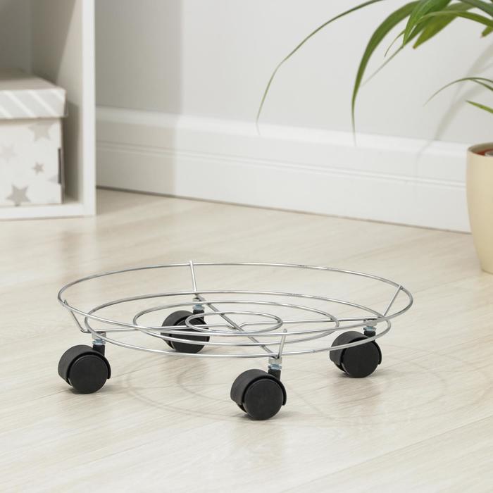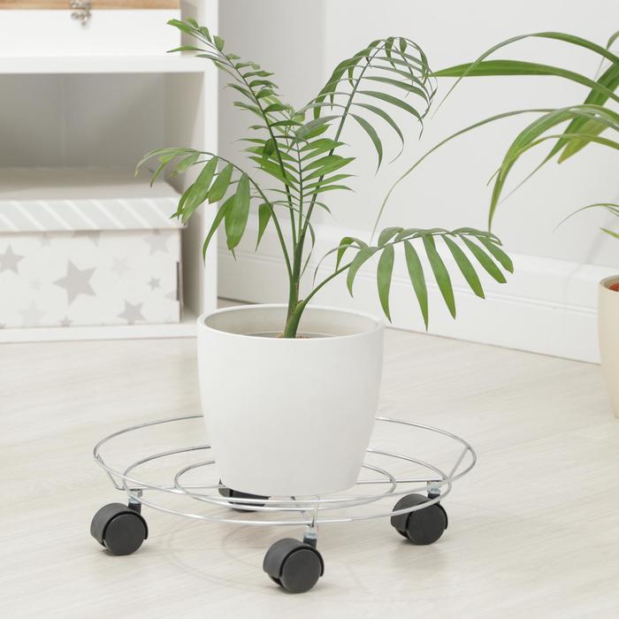 Подставка для цветов на колёсиках Доляна, 32×32×10 см, хром