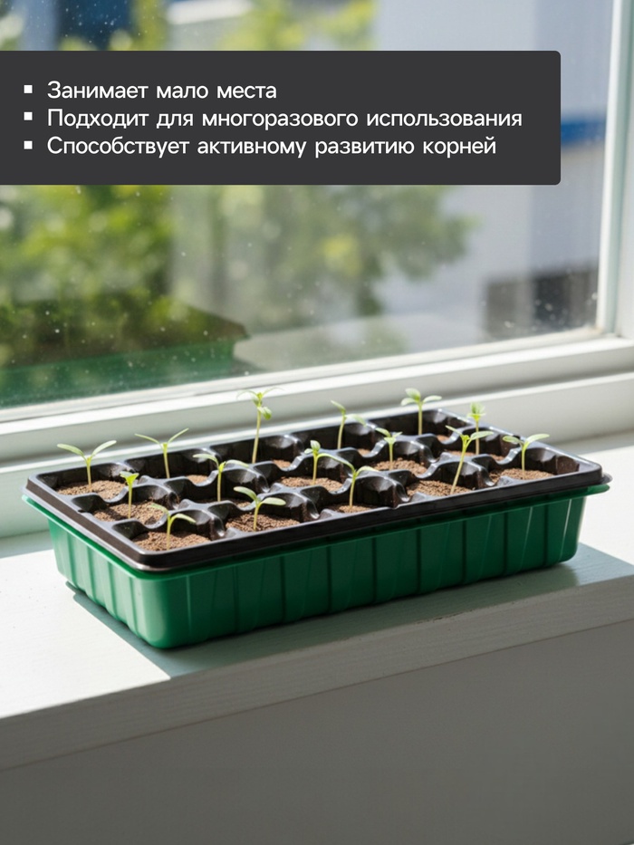 * Кассета на 15 ячеек по 150 мл: каждая ячейка соответствует размеру торфяной таблетки. Объём достаточен для развития корневой системы до пересадки.