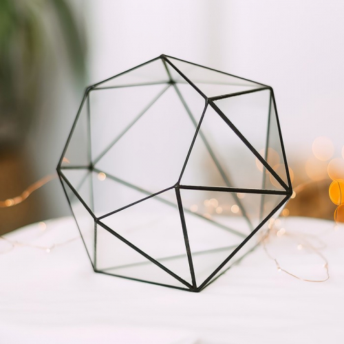Стеклянный флорариум «Бриллиант» — изящный акцент для интерьера, где природа встречается с геометрией. Чёткие линии и прозрачные грани создают эффект «живого» украшения, в котором можно выращивать суккуленты, мох или миниатюрные композиции. Чёрные швы подчёркивают форму, добавляя контраст и современный штрих.