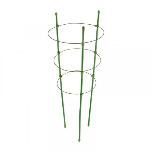 Кольцевая опора для садовых и комнатных цветов – практичный предмет для выращивания растений. Выполняет функцию опоры для неокрепших стеблей, которые могут ломаться под весом массивных соцветий. Процесс установки крайне прост и не отнимет много времени. Маскирующий зелёный цвет опоры делает её практически незаметной на фоне листьев и стеблей, поэтому можно не беспокоиться, что её вид нарушит гармонию и порядок сада. Опора состоит из 5 колец и 3-х опор, расширяющихся к верху. Высота – 150 см.